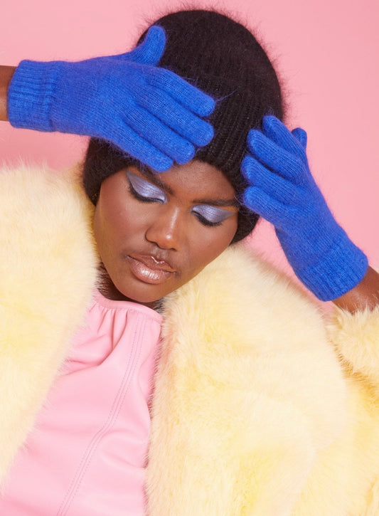 Cashmere Blend Knitted Gloves | Blue