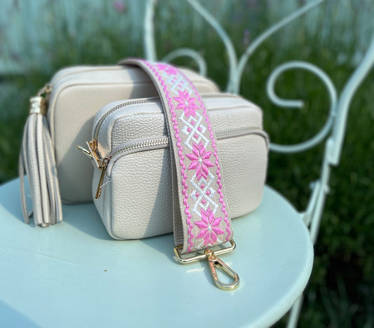Crosshatch Chevron Bag Strap | Blue & Pink