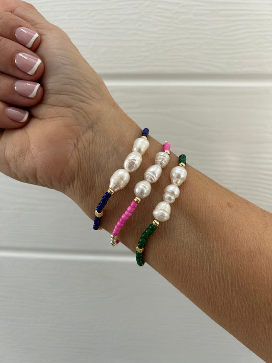 Freshwater Pearl Bracelets | Blue, Green or Pink