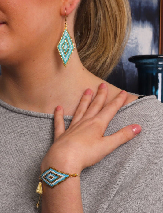 Summer Diamond Miyuki Bead Earrings | Turquoise