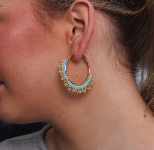 Summer Miyuki Bead Hoop Earrings | Turquoise