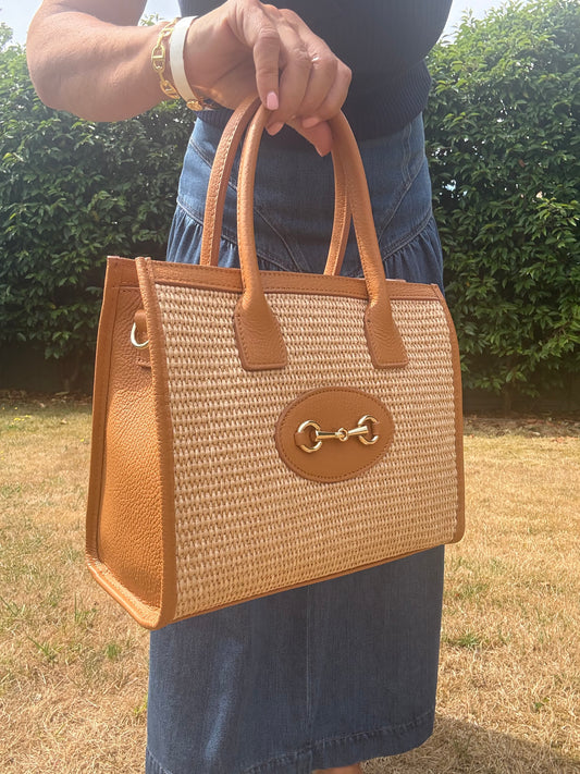Monza Raffia & Leather Bag | Tan