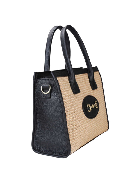 Monza Raffia & Leather Bag | Black