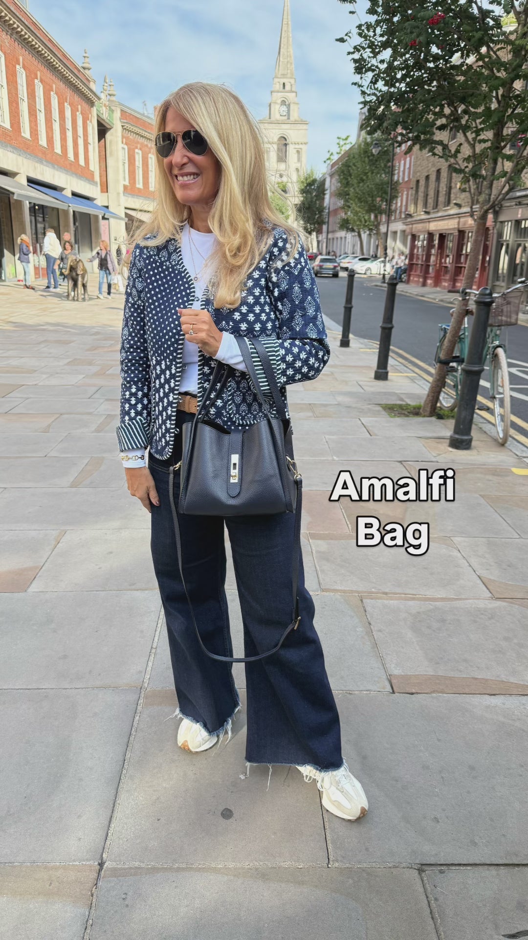 Versatile by design, the Amalfi can be carried by the short top handles for a polished look, or worn over the shoulder or crossbody using the detachable, adjustable strap.