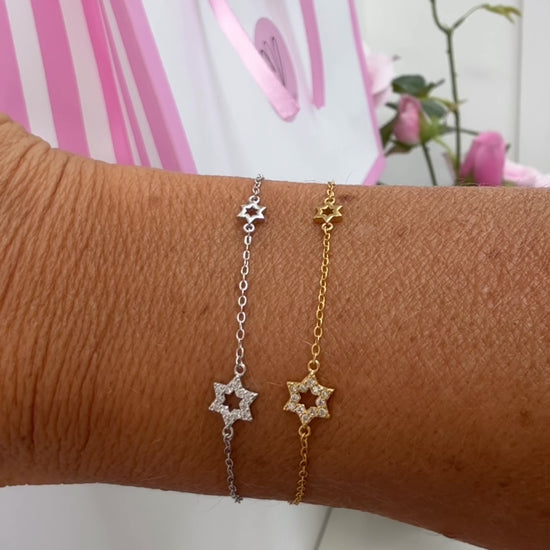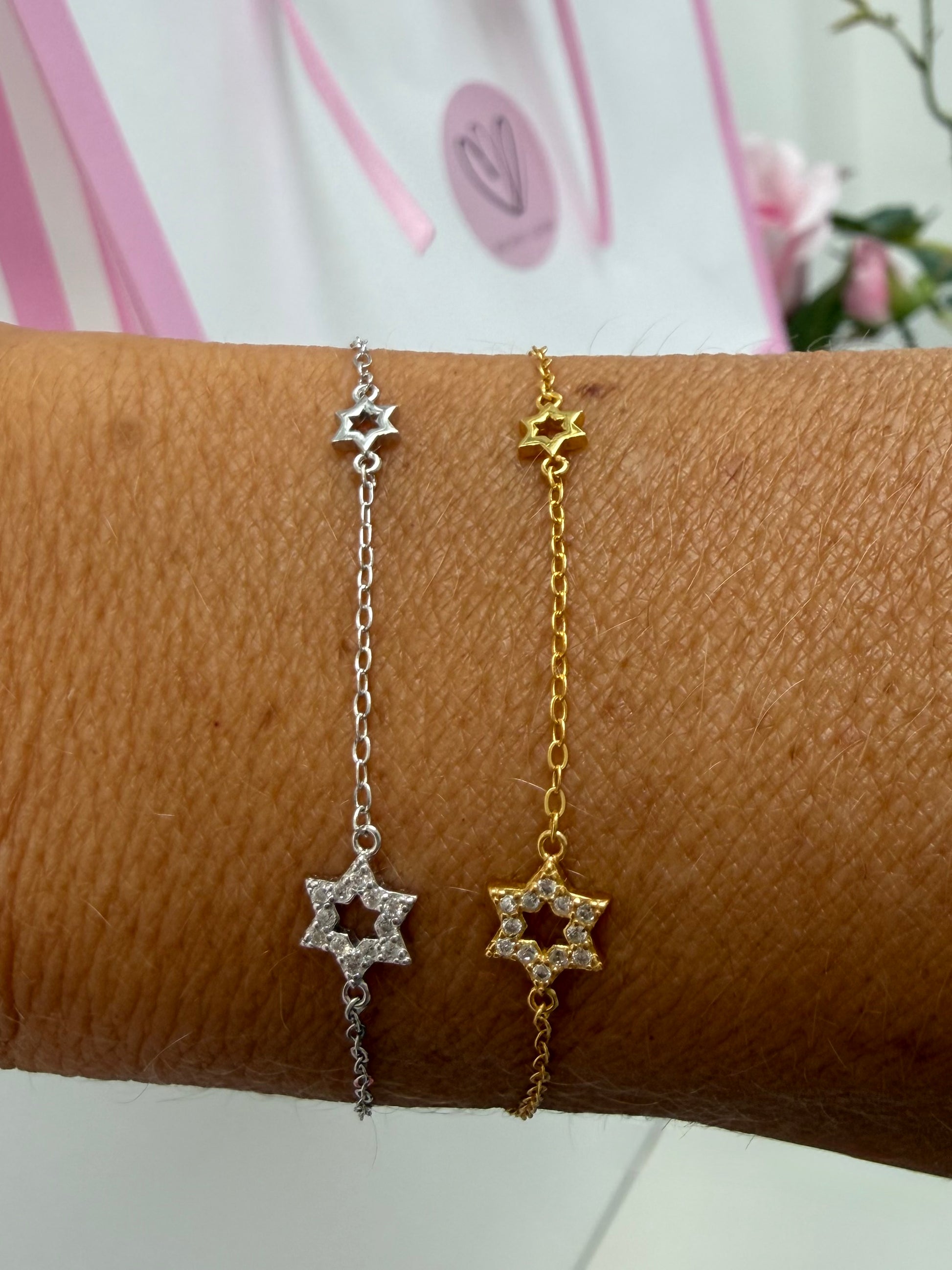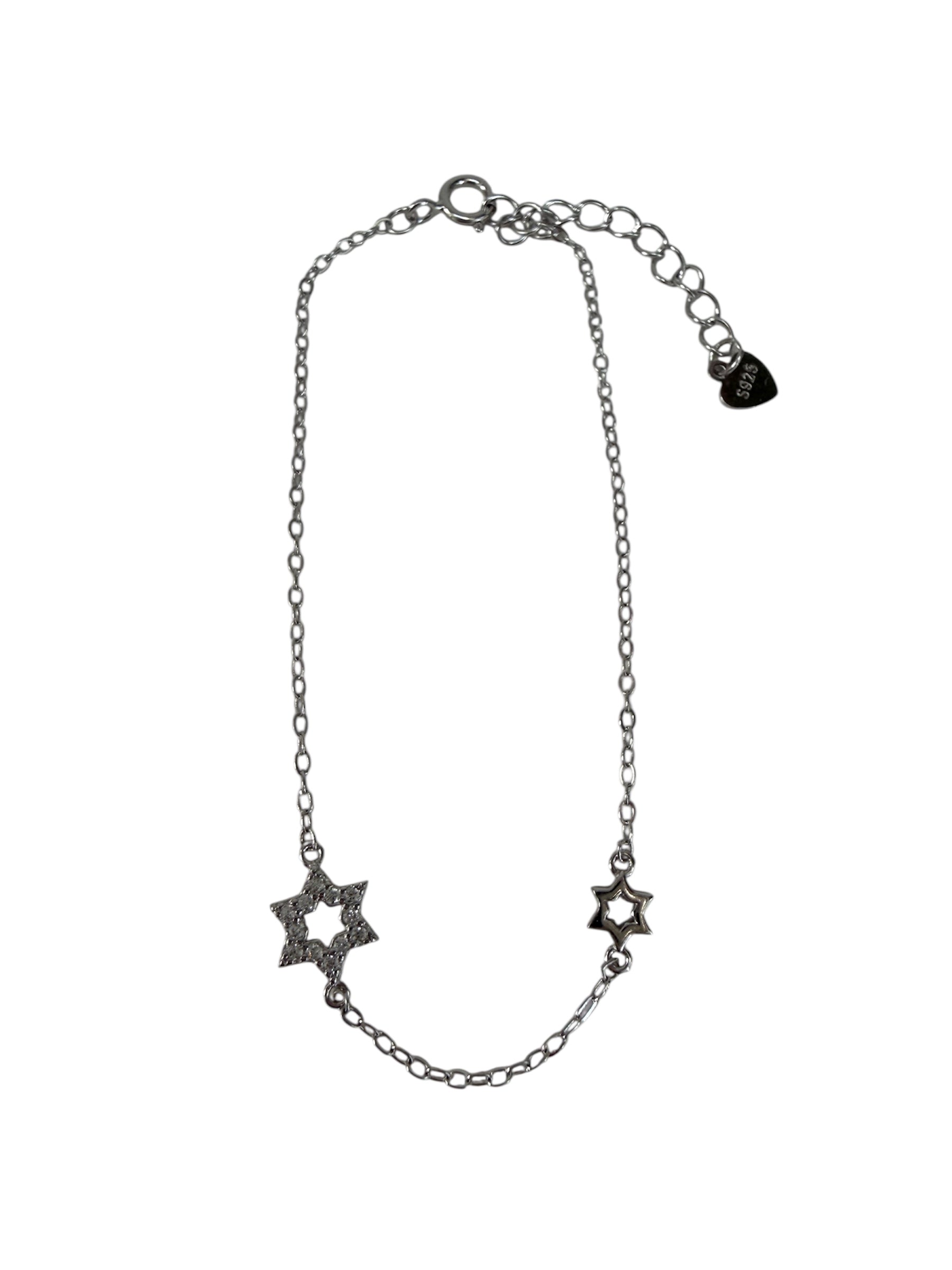 Add a touch of meaning and elegance to your jewellery collection with this handmade 925 Sterling Silver bracelet, featuring two delicate Star of David charms — one slightly larger than the other — beautifully layered for timeless style.