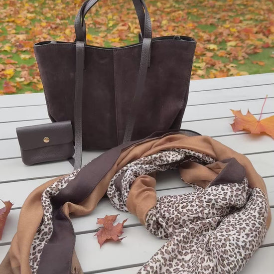 New for A/W 2025 is the Genova Suede Tote Bag, crafted from premium Italian suede leather for a soft, elegant finish. Versatile by design, it can be carried by hand or worn over the shoulder, with side snap fasteners creating two distinct silhouettes.