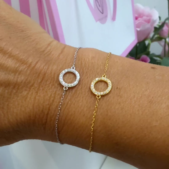 Elevate your everyday look with this elegant Open Circle Bracelet, symbolising unity and timeless style. Crafted from high-quality 925 sterling silver and available in a luxurious gold-plated finish, this delicate bracelet features a 10mm open circle charm adorned with sparkling Cubic Zirconia pavé stones for a touch of brilliance.