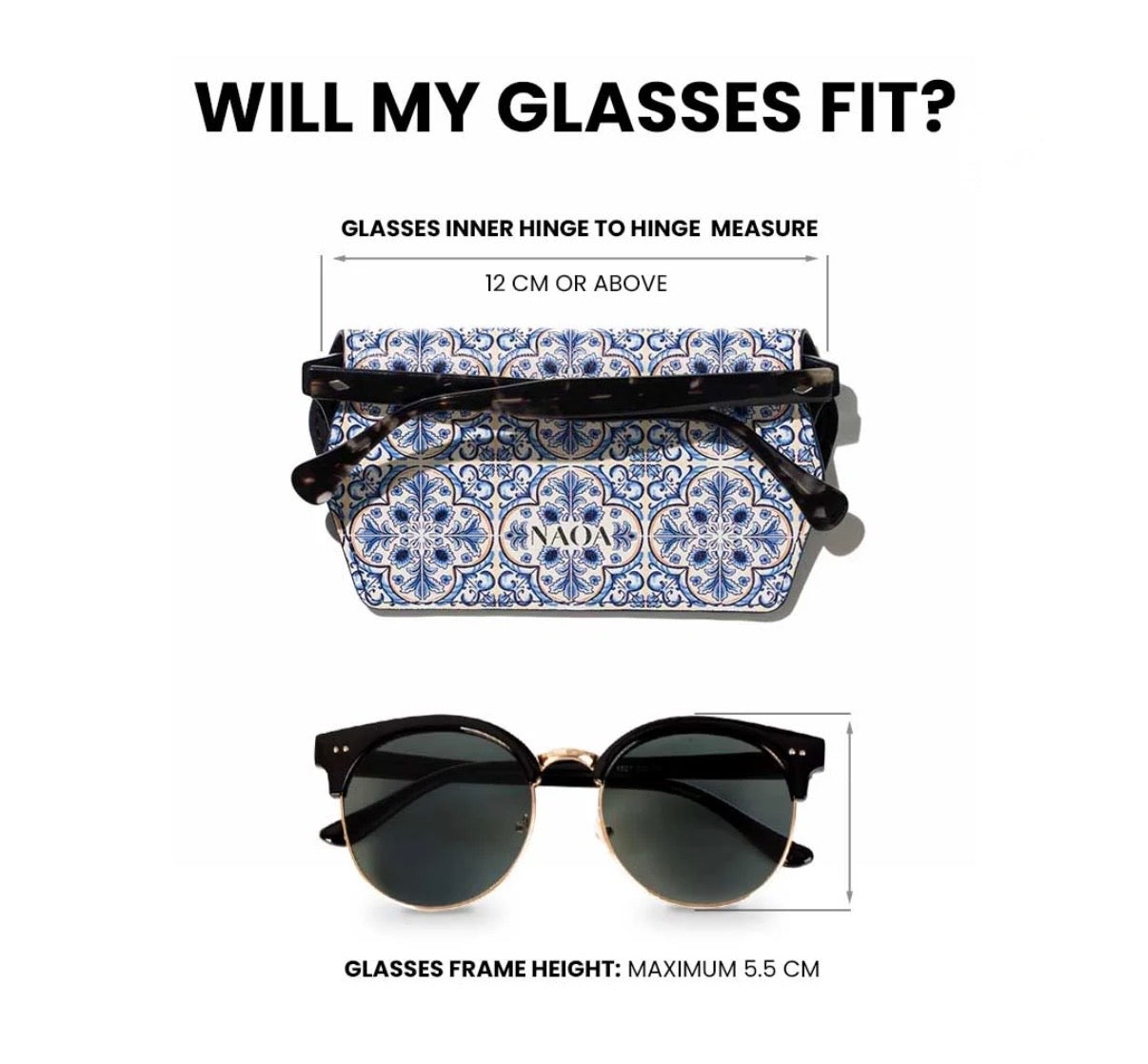 - For oversized sunglasses, check frame height — anything taller than 5.5 cm won’t fit